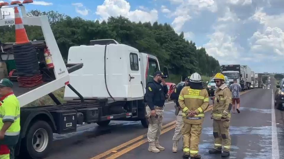 Uma fila de veículos se formou na rodovia em decorrência da interdição. O Corpo de Bombeiros, o Siate e o Samu atenderam a ocorrência.