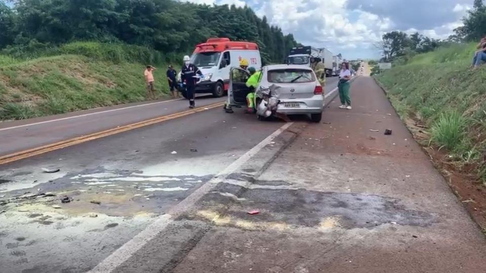 Dez pessoas ficaram feridas em um acidente entre três veículos na BR-277 em Santa Tereza do Oeste na tarde deste sábado (01). A batida envolveu um veículo fiat fastback e dois volkswagen gol.
