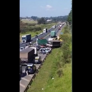 Contudo, o motorista de um bitrem carregado com calcário não conseguiu frear, mesmo com toda a sinalização e bateu com os veículos que estavam parados sobre a pista. Após a colisão o bitrem saiu da pista e tombou na faixa de domínio.