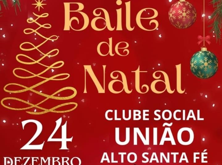 O tradicional Baile de Natal do Clube Social União, de Alto Santa Fé, acontece na próxima semana. Será terça-feira, dia 24 de dezembro, a partir das 23h00.