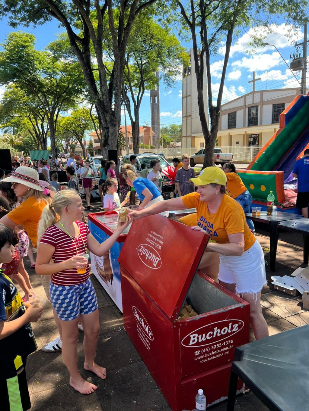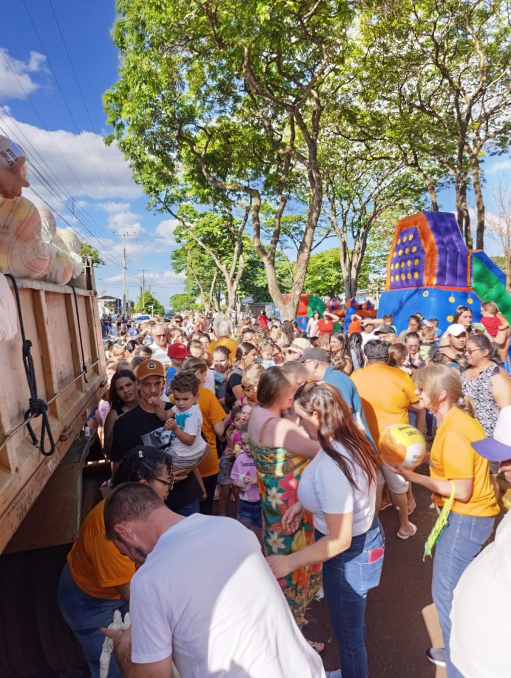 A sexta-feira (31) foi marcada por muita alegria e diversão em Nova Santa Rosa. Mais uma edição do Dia da Criança na Praça da Bíblia foi realizada com grande sucesso, reunindo cerca de 1.500 pessoas entre crianças e famílias, que aproveitaram uma tarde repleta de lazer, brincadeiras e confraternização.