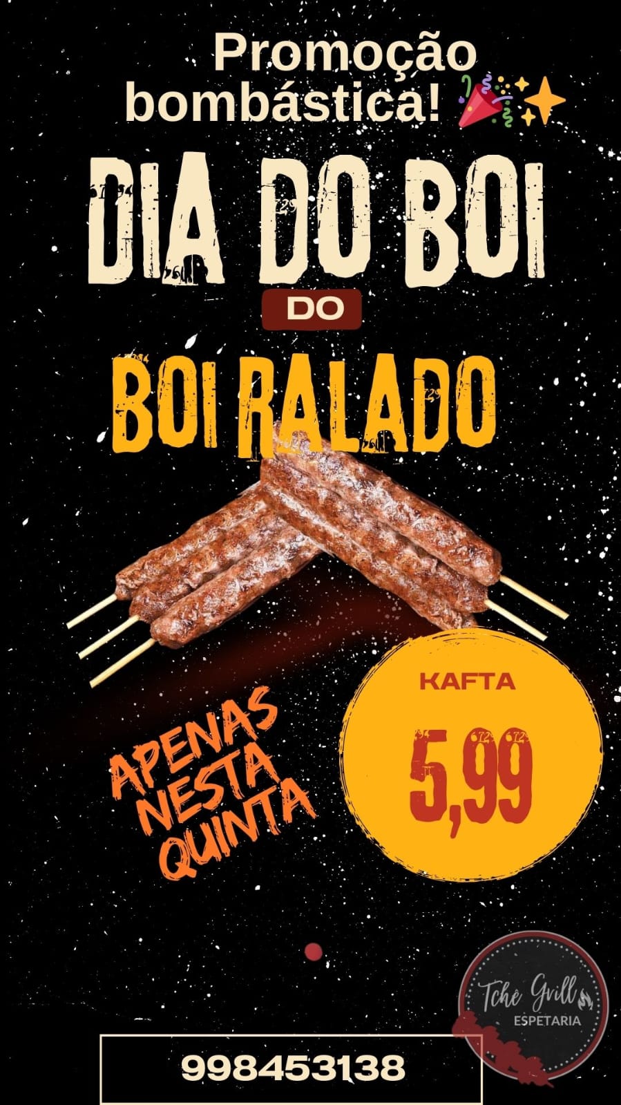 - Dia do Boi – do Boi Ralado: Espetinho de Kafta por APENAS R$5,99.