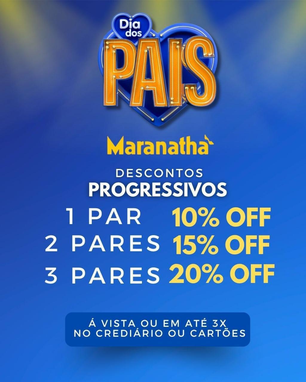 A Maranatha Calçados, localizada no centro de Nova Santa Rosa, preparou uma promoção especial para celebrar o Dia dos Pais com economia e estilo. A campanha oferece descontos progressivos em calçados, garantindo vantagens ainda maiores para quem leva mais de um par para casa.