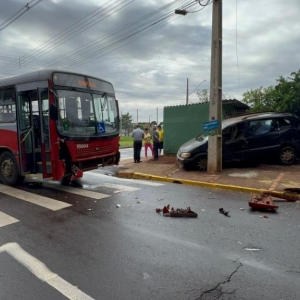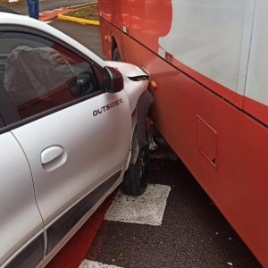 Dois acidentes de trânsito envolvendo ônibus e carro foram registrados, em Toledo, nesta tarde de segunda-feira (17).