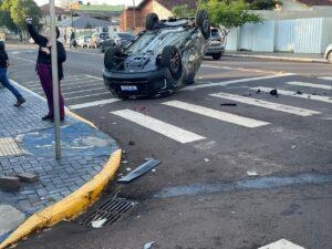 Já o Tracker, após o forte impacto, tombou na via. O condutor, felizmente, não se feriu.