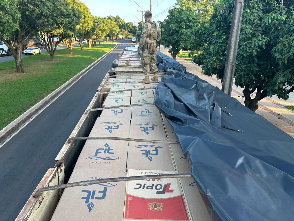 Em seguida, outro bitrem também foi abordado transportando cigarros. O motorista desse veículo, também detido, afirmou que a carga seria levada para Curitiba/PR.