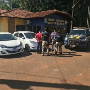 Foi dada a voz de prisão aos dois indivíduos. Estes e os veículos foram levados para a Unidade Operacional da PRF de Quatro Pontes. Lá chegando contataram que os veículos eram produto de Roubo/Furto. Sendo o Ford Ka, ano 2016, branco (roubado em 25/03/2017 em Viamão - RS) e Hyundai HB20S, ano 2015, branco (roubado em 30/04/2018 em Alvorada - RS).
