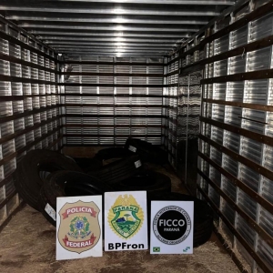 Ao perceber a presença policial os indivíduos empreenderam fuga, não sendo possível localizá-los. Após verificação foi constatado que havia 30.000 pacotes de cigarros e 8 pneus de origem estrangeira.