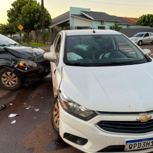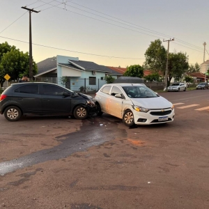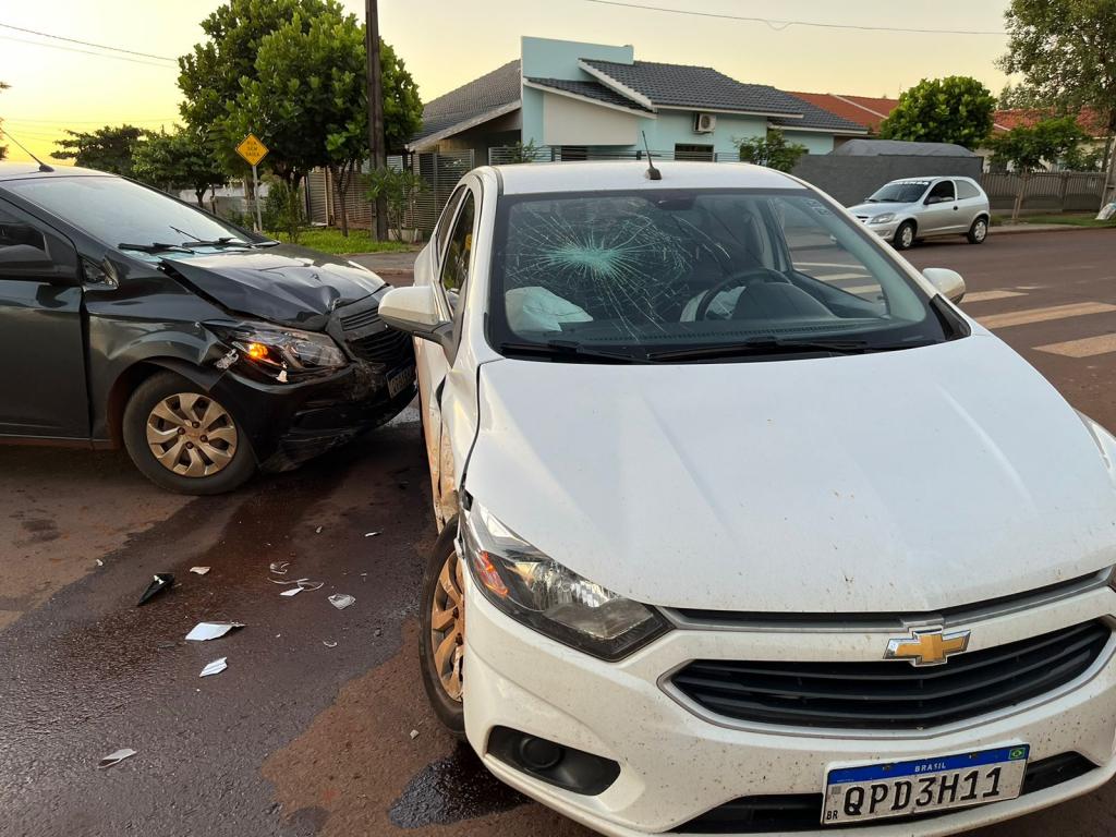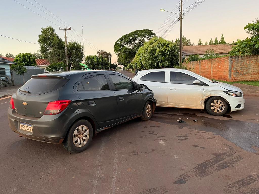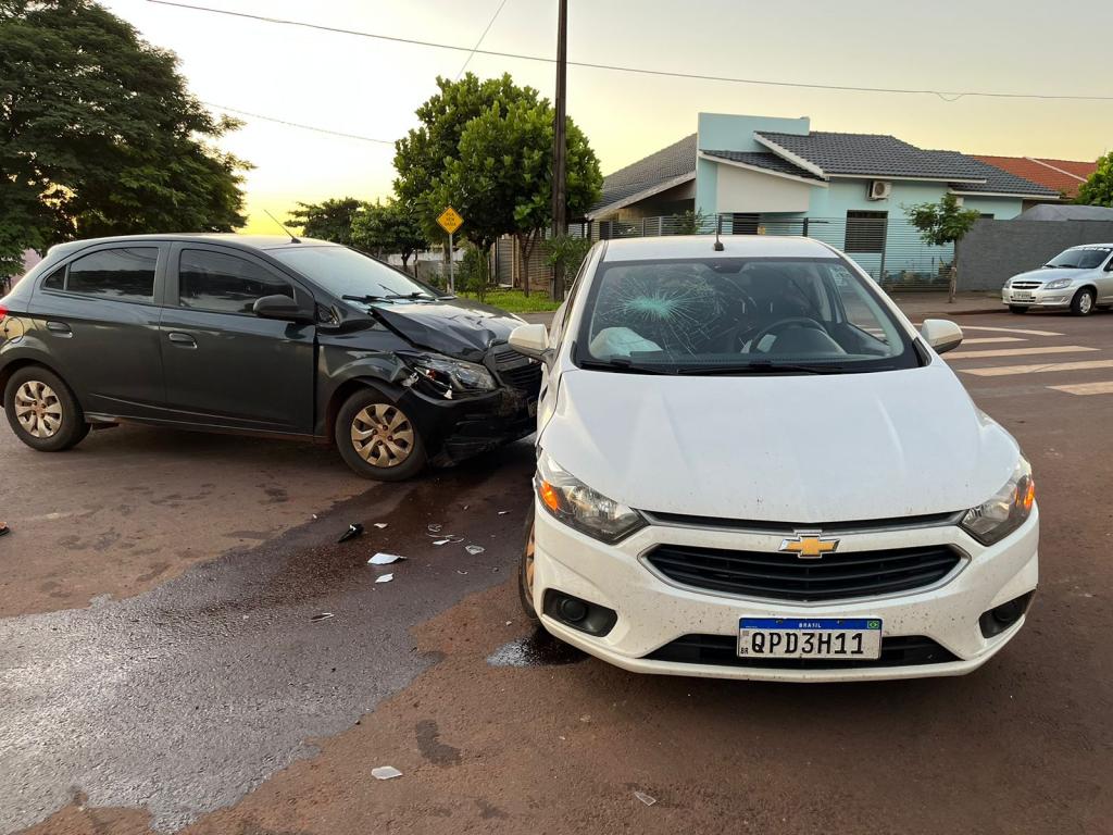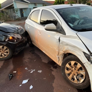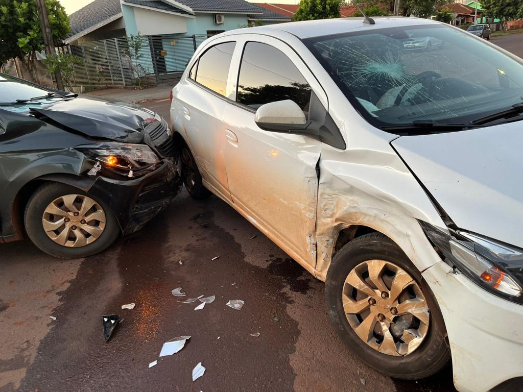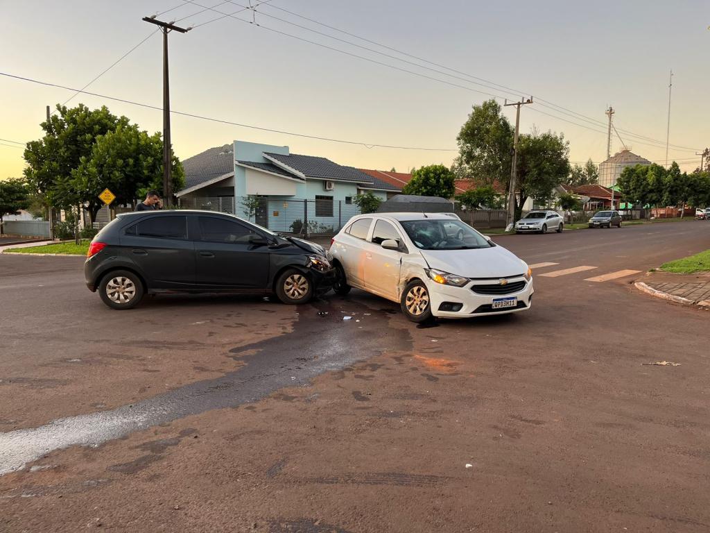 No início da noite desta quinta-feira, dois veículos Chevrolet Ônix, com placas Mercosul registrados em Nova Santa Rosa se envolveram em uma colisão na esquina da Rua Campinas com a Rua Porto Mauá, na rota de caminhões, região central da cidade.