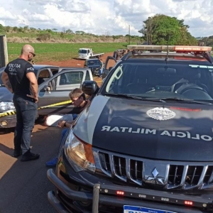 Na tarde desta quarta-feira uma equipe da Rotam da Polícia Militar de Toledo tentou abordar um veículo Renault Clio com placas de Toledo que seguia no sentido Cascavel a Toledo pela rodovia BR 163 foi recebida a tiros por dois elementos que estavam no carro.
