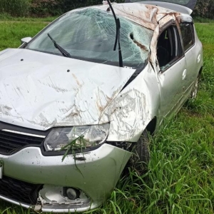 Os policiais foram atrás fazendo um acompanhamento tático e em uma curva o condutor perdeu o controle veio a capotar fora da pista parando na posição normal.