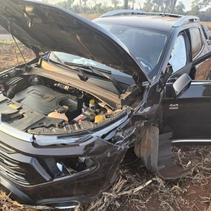 Segundo o que informou um popular que reside nas proximidades, o Toro teria invadido a pista contraria quando houve a colisão lateral entre os dois carros que foram parar as margens da rodovia em uma lavoura, o Fiat teve o airbag acionado e a roda dianteira esquerda arrancada.