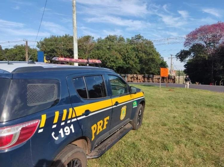 Após a colisão carreta ficou desgovernada e acabou tombando nas margens da BR-163, o condutor do veículo pesado não ficou ferido.