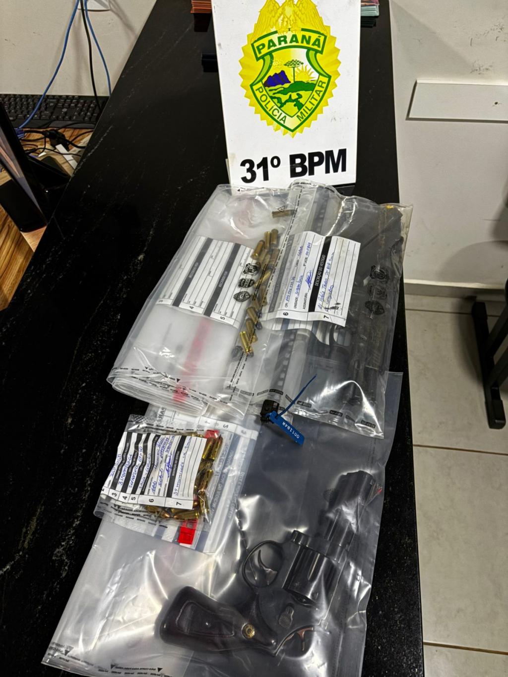 Durante a revista pessoal, foram encontradas sete munições calibre .38 no bolso do motorista. Em seguida, os policiais realizaram busca no interior do veículo, onde localizaram um revólver calibre .357 carregado com seis munições calibre .38, totalizando 13 munições desse calibre.