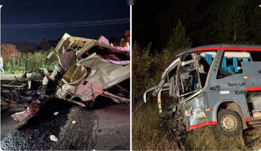 Um acidente envolvendo um caminhão e um ônibus fretado por uma família deixou duas pessoas mortas e 23 feridas na noite deste domingo (5), na PR-151, em São Mateus do Sul, no sul do Paraná.