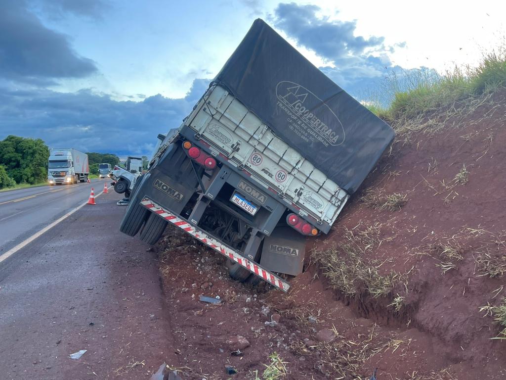 Os ocupantes do Fiat Strada não resistiram à gravidade dos ferimentos e morreram no local. Os condutores da carreta e da Fiorino não se feriram.