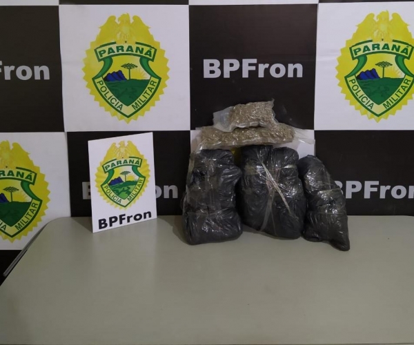 Um veículo Audi com dois ocupantes foi abordado na manhã deste sábado pelos policiais militares do BPFron no município de Guaíra e no interior do veículo foram encontrados cinco quilos de maconha, que após a pesagem no batalhão somou a quantia de 5.345 kg do ilícito.