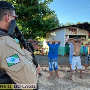 Durante a fiscalização, um carro ocupado por moradores de Vera Cruz do Oeste foi abordado. Em vistoria no veículo, os agentes encontraram um simulacro de pistola e uma porção de maconha.