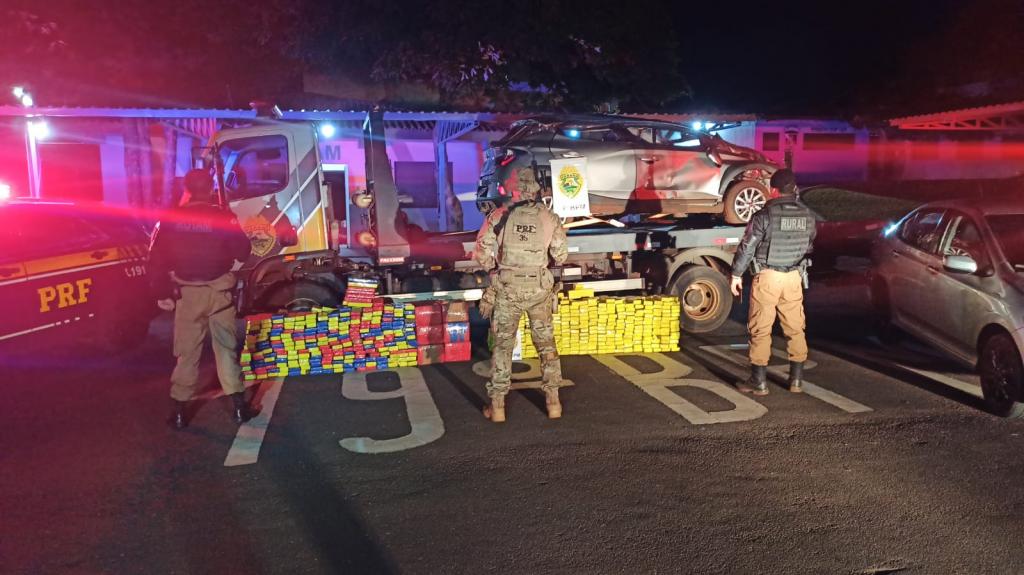 Durante operação em conjunto da Policia Rodoviaria Federal e Policia Militar de Toledo, nesta quarta-feira na BR 163, município de Toledo, foram apreendidos dois veículos carregados com 837 kg de maconha.