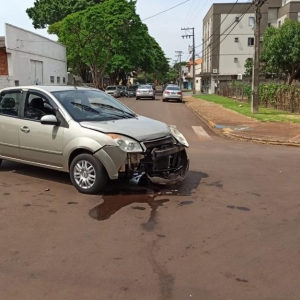 Danos de regular monta foram registrados em uma colisão ocorrida no início da tarde desta quarta-feira (06), na Vila Industrial, em Toledo.