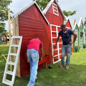 Neste ano, a decoração também se expande para novos pontos da cidade. Presépios estão sendo montados no Lago Municipal, algo inédito, além da Praça do Colonizador e das comunidades do interior, que também receberão elementos e símbolos natalinos.