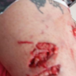 Leidiana, moradora da Rua 8 de Maio, no Mutirão em Nova Santa Rosa, foi atacada pelo seu próprio Pitbull, o Drácula, que está com a família há aproximadamente um ano e seis meses, idade do cachorro.