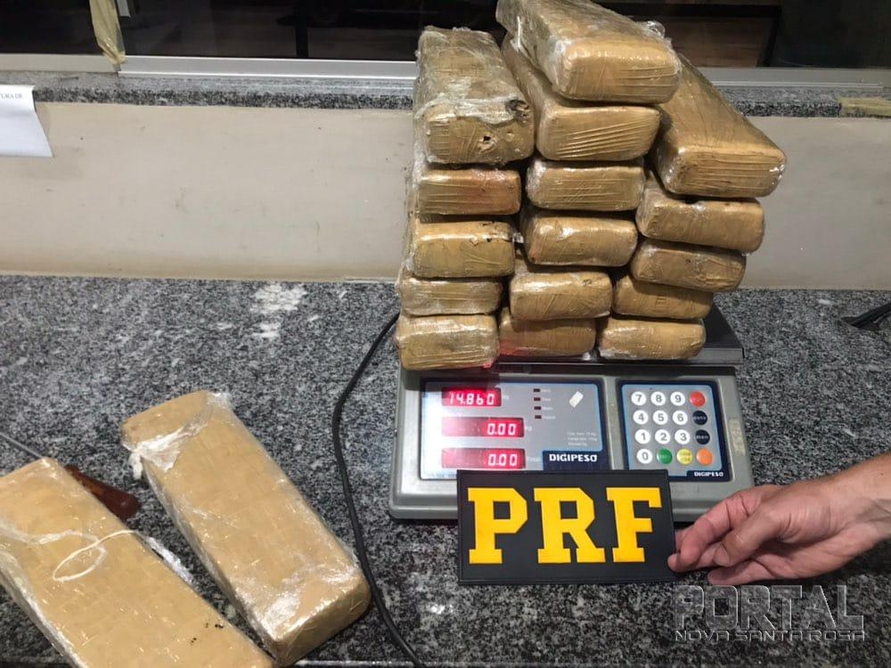 Durante a abordagem, o condutor apresentou nervosismo, o que fez com que os policiais realizassem uma fiscalização minuciosa no veículo, sendo encontrado escondido no interior das duas portas traseiras 20 tabletes de maconha totalizando aproximadamente 19,6 kilogramas e um pacote contendo aproximadamente 65 gramas de cocaína.