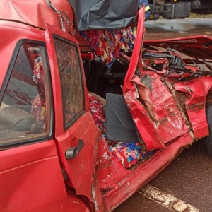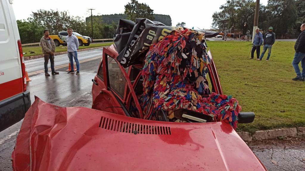 O Uno ficou destruído, a Polícia Rodoviária Estadual atendeu ao acidente.