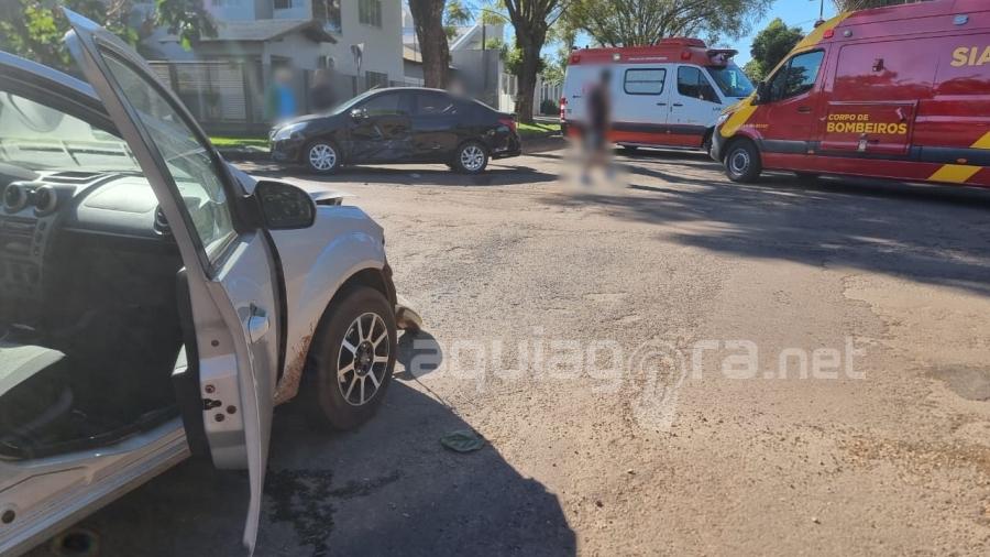 O veículo Versa seguia pela rua Mém de Sá sentido centro-Copagril, e o Fiesta seguia pela rua Pará em direção à avenida Maripá, quando houve a colisão.