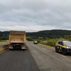 O trânsito no local estava bloqueado para atendimento a um caminhão com problemas mecânicos.