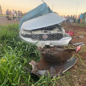 O sinistro envolveu um Fiat/Argo de Corbélia e uma carreta.
