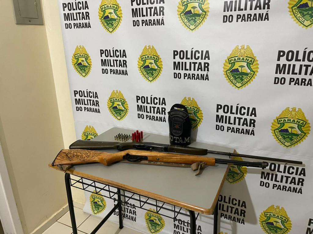 A abordagem foi realizada e encontradas no veículo duas espingardas, uma calibre 22 e outra calibre 36, com algumas munições intactas.