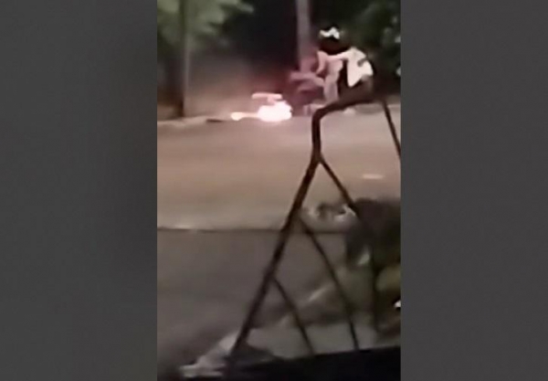 Por volta das 22h30 da noite desta sexta-feira, uma equipe policial em patrulhamento avistou uma motocicleta pegando fogo em uma rua da região central da cidade, ao conversar com populares foi relatado que havia ocorrido uma briga entre pai e filho, e o filho havia ateado fogo na motocicleta.