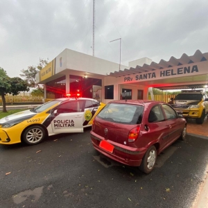 Equipe policial de plantão do Posto de Polícia Rodoviária de Santa Helena foi informada por usuários da rodovia os quais relataram que havia um veículo de cor vermelha trafegando em zig zag pela rodovia e invadindo pista contrária.