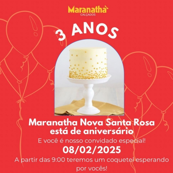 A Maranatha Calçados de Nova Santa Rosa está de aniversário!!!