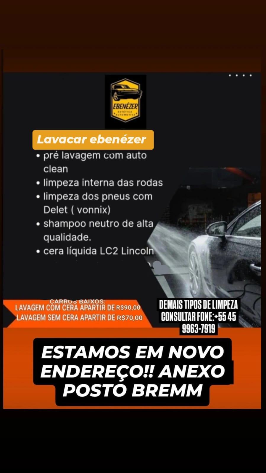 Ebenezer Estética Automotiva — agora em novo endereço, anexo ao Posto Bremm, oferecendo qualidade, experiência e cuidado para o seu veículo.