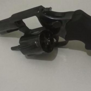 Um dos policiais militares refez o trajeto a pé que o veículo GM/Astra fez do momento da primeira visualização até a abordagem, e localizou um revólver calibre 38 na calçada, contendo 5 munições intactas do mesmo calibre.