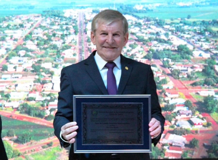 O deputado estadual Elio Lino Rusch recebeu o título de Cidadão Honorário do município de Serranópolis do Iguaçu por seu trabalho em prol da emancipação do município. A entrega da homenagem realizou-se durante sessão solene da Câmara de Vereadores, na noite de segunda-feira (17), no Centro de Eventos municipal. Junto com o deputado, membros da comissão de emancipação também foram homenageados.