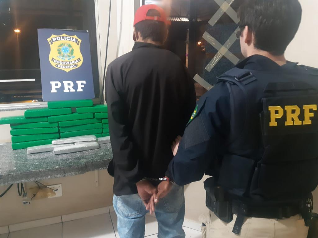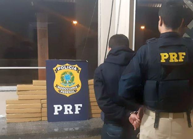 No bagageiro do veículo, foram encontradas duas mochilas com 31,5 quilos de maconha. Responsável pela carga ilícita, um passageiro de 28 anos de idade foi identificado e preso em flagrante. Ele saiu de Eldorado (MS) e pretendia levar a maconha até Santa Maria (RS).