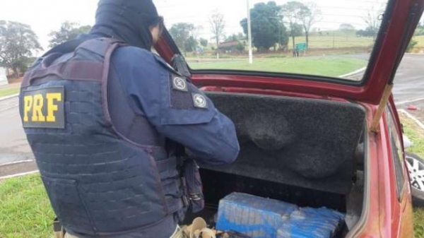No sábado, pela manhã, agentes da PRF apreenderam 541,7 quilos de maconha em um carro abandonado em Guarapuava.