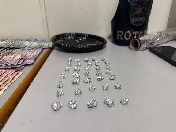 Diante da suspeita, os policiais entrara na residência e localizaram três indivíduos. Durante as buscas, foram encontradas quantias de dinheiro divididas em cédulas de diferentes valores, totalizando mais de R$ 1.700. Além disso, foram apreendidas 38 pedras de crack, uma gilete com resquícios da droga, fios de cobre sem procedência e oito celulares, sendo que seis deles não possuíam identificação de proprietário.