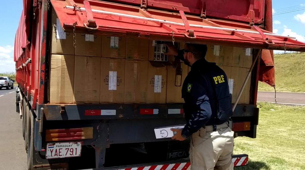 Em um intervalo de apenas quatro horas, a Polícia Rodoviária Federal (PRF) apreendeu quatro carretas que transportavam, no total, cerca de 1,8 milhão de carteiras de cigarro contrabandeado do Paraguai nesta sexta-feira (6) no oeste do Paraná.