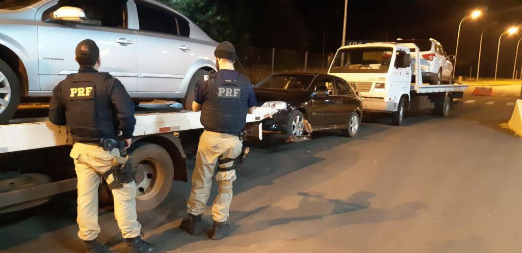 Os dois primeiros carros foram apreendidos em Terra Roxa, na BR-272. Por volta de 23h30 de ontem, os motoristas de um veículo Hyundai Veracruz e de um Chevrolet Vectra desobedeceram a ordem de parada das equipes da PRF e da PF.