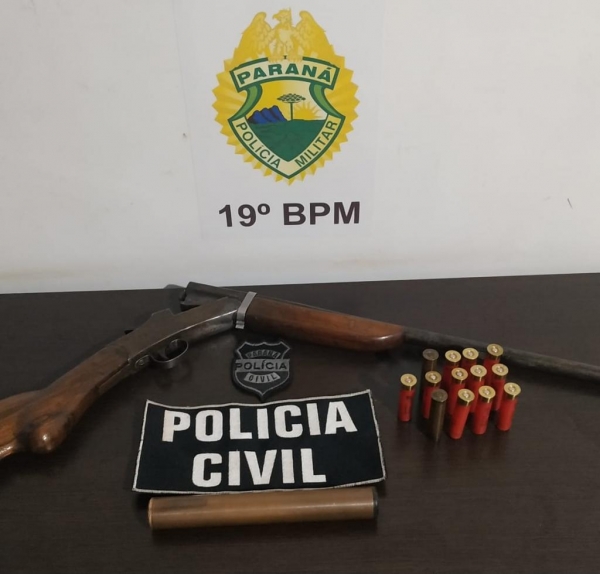 O armamento foi localizado durante uma abordagem e buscas na residência do responsável pela arma, que foi encaminhado para os procedimentos cabíveis.