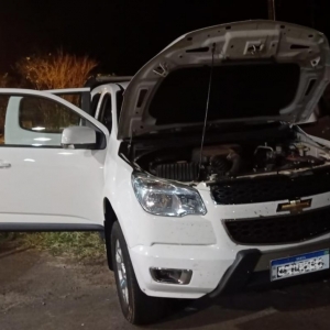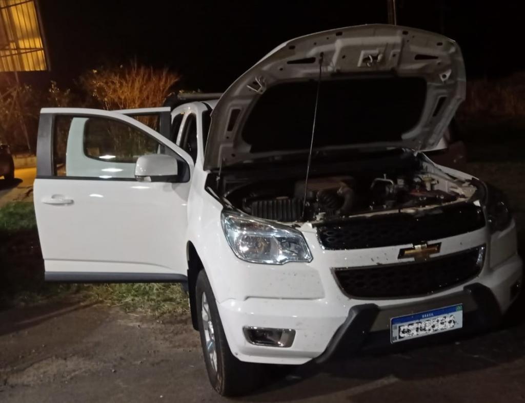 Em seguida, a equipe resolveu observar os detalhes do veículo quando descobriu que as placas estavam trocadas e, na verdade, tratava-se de uma camionete tomada de assalto de uma família da cidade de Goioerê(PR) na véspera da passagem de ano.