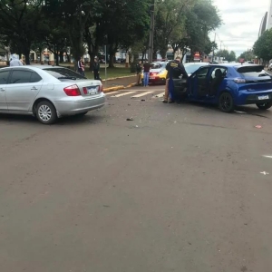 Foi apurado no local que o Toyota invadiu a via preferencial (Rua Paraná), ocasionando as colisões.
