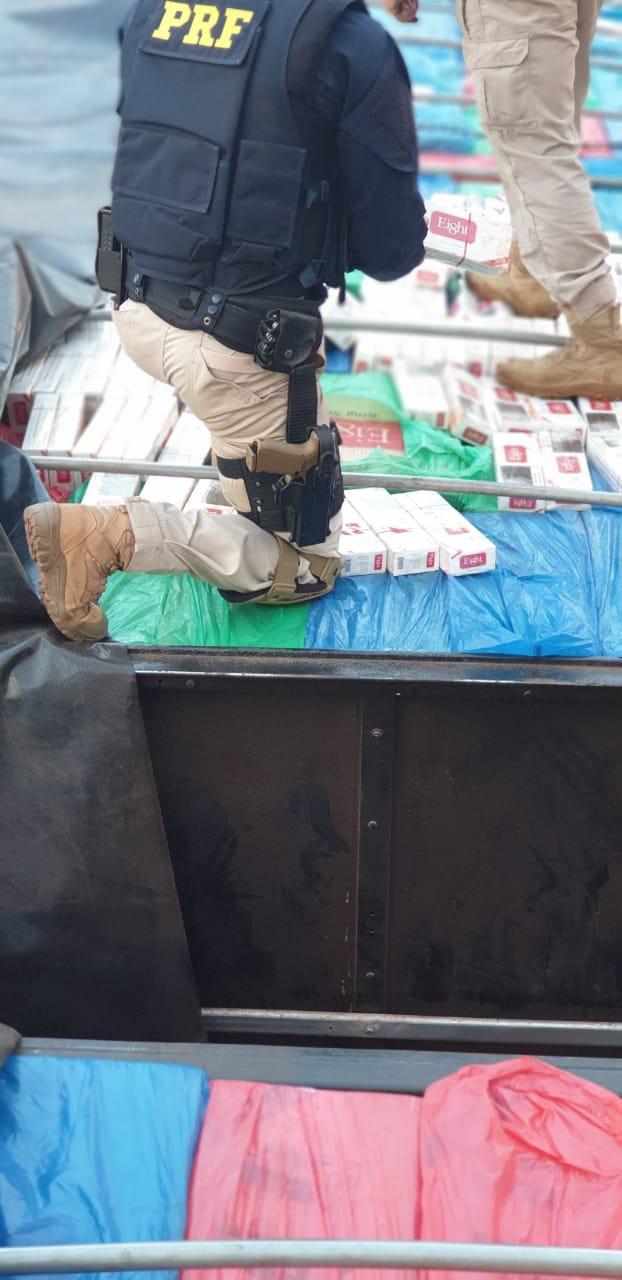 No início da manhã de hoje (13), por volta das 05h30, em Quatro Pontes, no km 280 da BR 163, a Polícia Rodoviária Federal (PRF), no exercício da Operação Hórus, apreendeu bitrem carregado com cerca de 45.000 pacotes de cigarros de origem Paraguai.