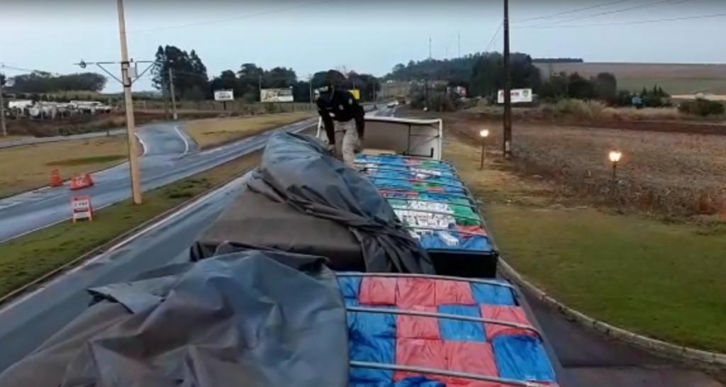 Segundo o condutor, o mesmo pegou este bitrem na cidade de Guaíra, receberia R$ 3.500,00 e durante o trajeto seria informado do local para onde levar a carga de cigarro.