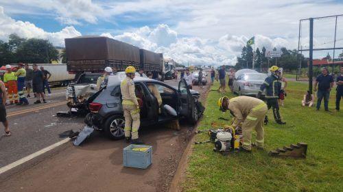Um engavetamento envolvendo seis veículos de passeio e uma carreta provocou transtornos na tarde desta terça-feira (23) na BR-277, no Trevo Guarujá, em Cascavel. O acidente aconteceu na pista no sentido Foz do Iguaçu e resultou em vítimas feridas e interdição parcial da rodovia.