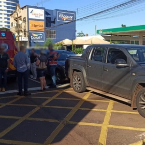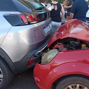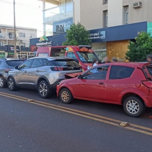 Um acidente de trânsito do tipo engavetamento de veículos foi registrado, na manhã desta segunda-feira (06), no cruzamento da Avenida Parigot de Souza com a Rua Santos Dumont, área central de Toledo, nas proximidades do Teatro Municipal.